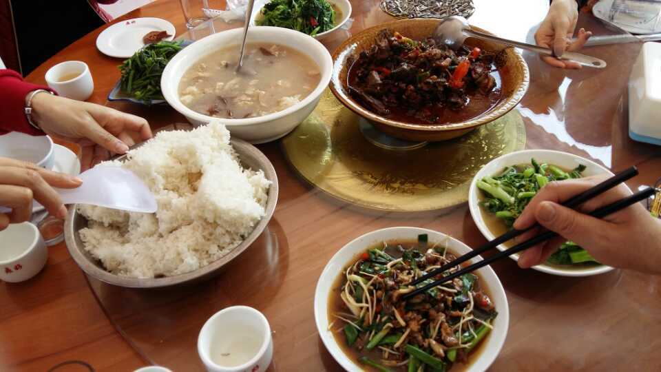 云南玉溪的早上有些冷,大家把昨天脱下的羽绒衣又穿上,八点上路,路上各地同方向的车车多的,担心明日通关往老挝方向堵车中午大家商商量量下高速到普耳找吃的。凭感觉找到这家农家饭店一一通关黄焖鸡,真资格乌骨黄焖土鸡、通关豆腐、酸瓜蹄花汤、奄肘子炖菜、炒茴香、炒鸡杂……吃货们呼儿嗨哟,安逸饭店门前的红花花喜庆献给各位围观的,祝福大家好运多多