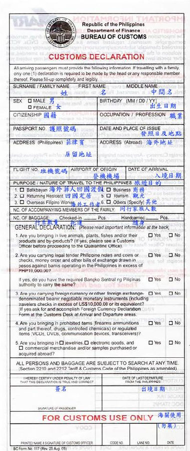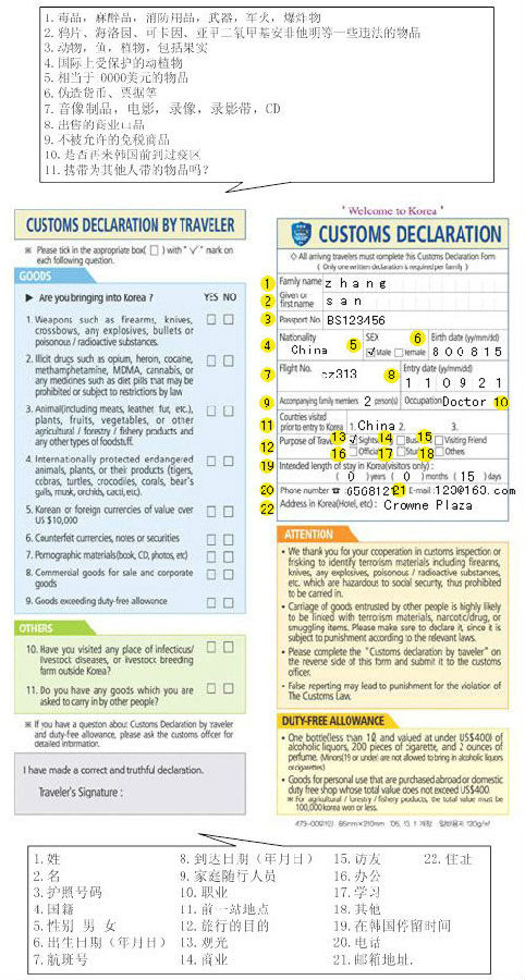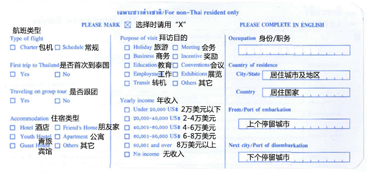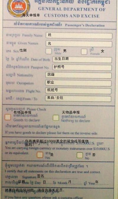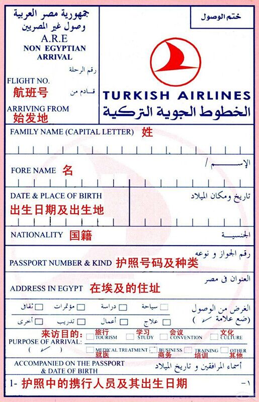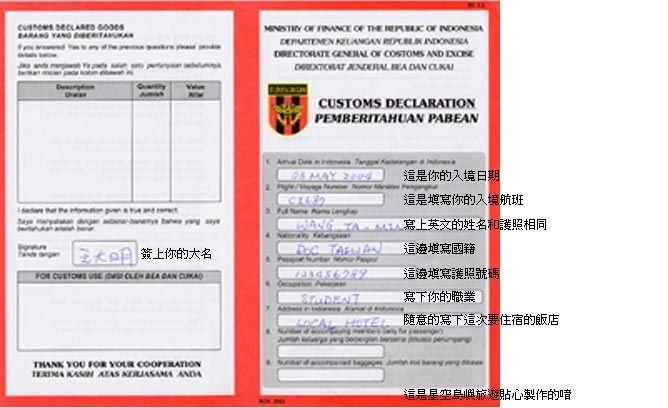 入境卡背面: