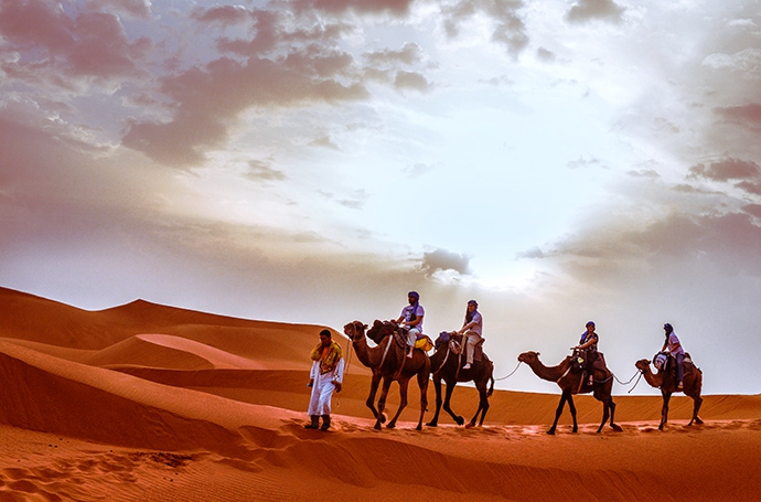 D7:撒哈拉沙漠(早中晚餐) 住:沙漠营地 今日行程:上午沙漠周边游览,乘4驱越野深入撒哈拉大漠绿洲,探访柏柏尔游牧部落,下午乘骆驼前往Erg Chebbi Dunes大沙丘附近的沙漠营地。摩洛哥的撒哈拉是独一无二的,以形态各异的沙丘闻名于世,更因为它会随着光线的变化,展示出粉色,金色,血红色等不同的美丽色彩,这里是摄影人的天堂。拍摄建议:如果有水的话,早晨前往梅祖卡附近的季节性盐湖拍摄水鸟群,运气好可以拍到火烈鸟,在盐湖还可以拍到湖面和大沙丘共存的画面,然后进入撒哈拉腹地,拍摄游牧的柏柏尔部落,太阳落山前登上大沙丘,拍摄大漠日落,在太阳的余晖下,撒哈拉沙漠不断变幻着迷人的色彩。晚上拍摄浩瀚星空。 |