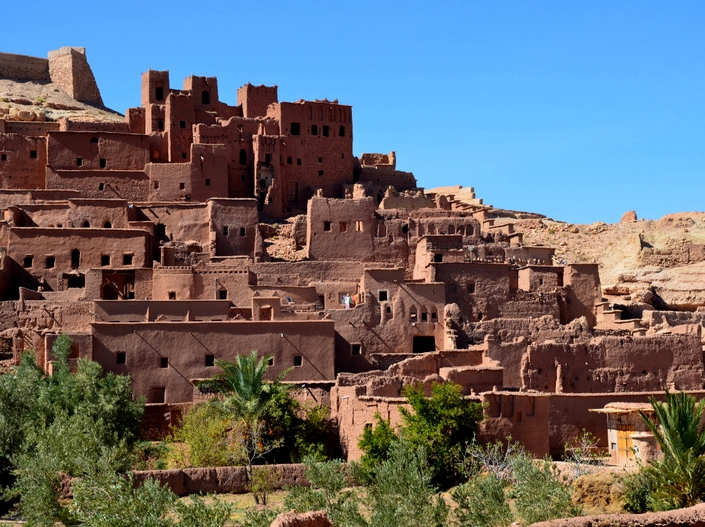 D5:马拉喀什—本哈杜—Dades峡谷 (早中晚餐) 320km 住:Dades峡谷附近 今日行程:从马拉喀什前往撒哈拉沙漠,翻越大阿特拉斯山海拔2260米的提什卡垭口,夜宿Dades河谷。参观游览:途中大阿斯特拉山风光,本哈度村,瓦尔扎扎特电影城,玫瑰谷等。 拍摄建议:世界遗产地本哈度村和沿途高山峡谷风光。保存完好的本哈杜村是典型的摩洛哥古代堡垒村落,用当地特有的赤土泥砖建成,在光线的作用下,展示着北非特有的红色魅力。 |