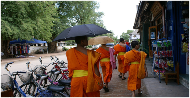 清晨参观琅勃拉邦特有的风景线--僧人化缘。琅勃拉邦市内寺庙佛塔众多,较大的就有50多座,每天的清晨从各个寺庙出来化缘的和尚排成长长的队列,黄色的袈裟,在太阳的照射下,折射出琅勃拉邦人对宗教的虔诚。早餐后驾车前往万荣,沿途观赏老挝原始风光,万荣的喀斯特地貌山青水秀,是老挝休闲旅游最有代表的地方,也是观光客人的度假天堂。下午自费参加南松河上的各项水上活动,如漂流,乘快船观赏南松河两岸秀美风光。方便自由活动,晚餐自理。
